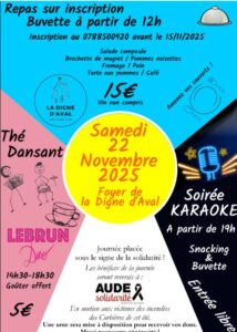 L’intégralité des bénéfices seront reversés à Aude solidarité.