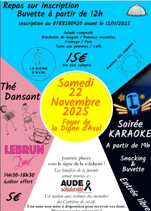 Le comité des fêtes organise une journée de solidarité le samedi 22 Novembre en soutien aux victimes des incendies des Corbières.