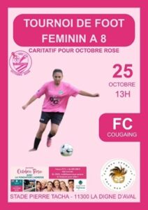 Le samedi 25 octobre, à 13h, le stade municipal Pierre Tacha accueillera un tournoi de football féminin à 8, organisé par le F C Cougaing dans le cadre d’Octobre rose.